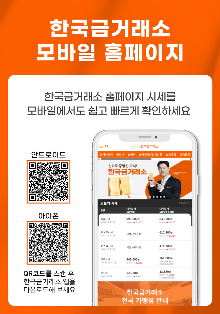 한국금거래소 모바일 웹페이지 안내