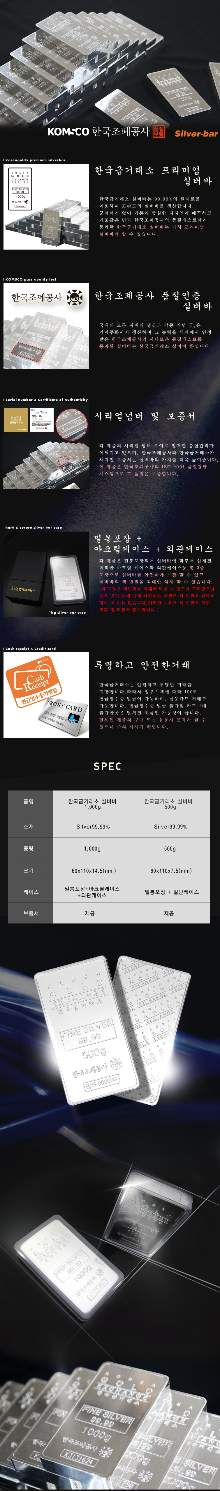 • 한국조폐공사 품질인증 실버바 500g